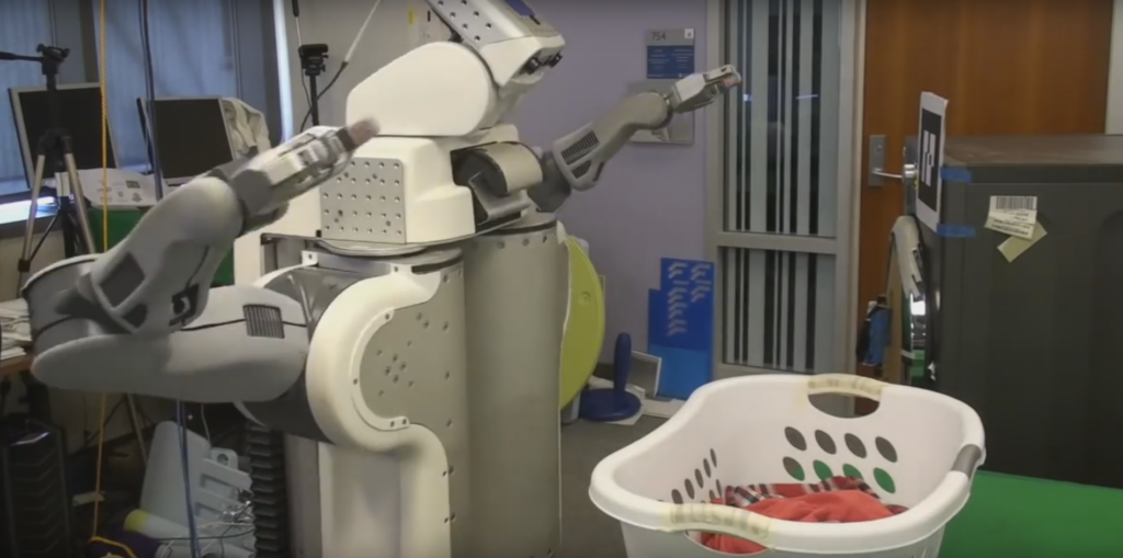 Men PR2 är ingen ny robot. Den har sedan tidigare kunna duka bord, hämta läsk i kylskåpet och vika kläder. Men nu kan den också tvätta kläder.