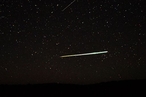 När stenar faller nära jorden kan vi se dem brinna upp. Det är det vi kallar en meteor. Bild: Wiki commons/C M Handler.