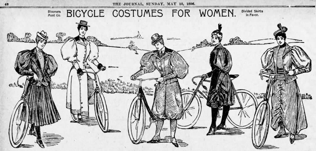 Men det var många kvinnor som tyckte att det här var fel. De var trötta på att behöva använda stora kjolar och korsetter som gjorde det svårt för dem att röra sig. Därför tog man fram en ny slags byxor som såg ut ungefär som en puffig byxkjol. Med den här nya byxan blev det lättare för kvinnor att röra sig och cykla.