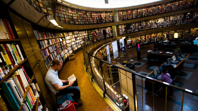 På bibliotek finns inte cyklar. Men där finns många böcker. I en skola...